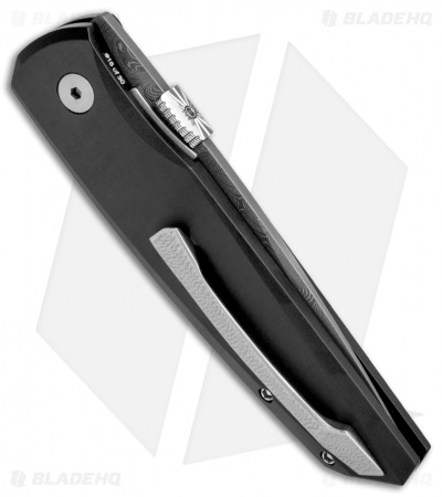 This Limited Edition Pro-Tech is a modern update to the classic Harkins ATAC D/A automatic knife. It is outfitted with a black anodized handle, Cocobolo inlays, a custom thumb plate opener, and a Chad Nichols Damascus blade. The hidden automatic release is located under the topmost inlay for covert opening action. One impressive update you’ll notice instantly is the precision milled titanium pocket clip. Numbered run of 30 knives.