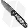 This Rockeye Auto Skull from Pro-Tech knives has been outfitted with the Bruce Shaw sterling silver skull and features a subtle patterned aluminum handle.