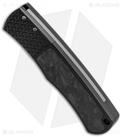 - Black aluminum handle with a marbled carbon fiber inlay.