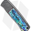 This custom Magic BR-1 knife from Pro-Tech features a two-tone satin/black finished 416 stainless steel handle with an abalone inlay and patterned bolster. The blade is Chad Nichols stainless damascus steel.