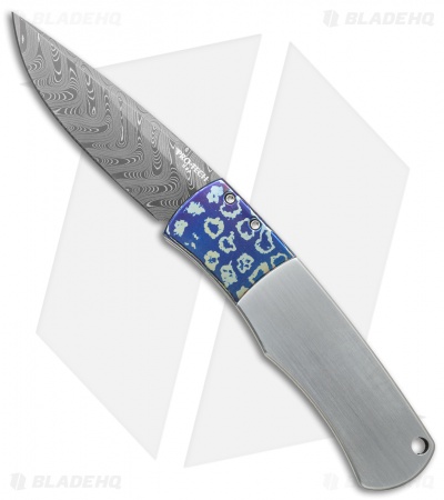 This custom Magic BR-1 knife from Protech is dressed to impress. It has a Chad Nichols stainless Damascus steel blade and solid 416 stainless steel handle with a two-tone satin/stonewash finish and a Moku-Ti bolster.