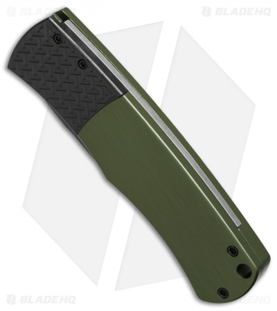 - Green-anodized aluminum handle with a textured bolster.