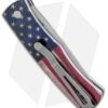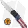 The Magic BR-1.40 automatic knife has a stonewashed 154-CM steel blade and a Vintage Flag anodized 6061-T6 aluminum handle with a black patterned bolster release.
