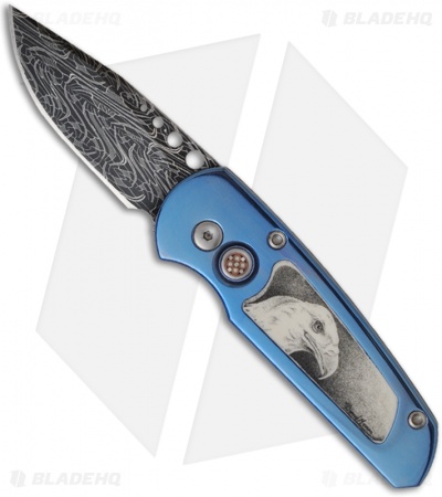 Pro-Tech One-of-a-Kind Custom Runt 2 Titanium Automatic Knife (1.9″ Damascus)