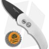 The Pro-Tech Runt J4 has a 154-CM stainless steel blade with California legal blade size of 1.9″. It’s outfitted with silver anodized handles, milled from T-6061 aircraft aluminum. Despite the knife’s small size it feels very good in the hand (it feels much bigger than it is) and has superb action. It opens like a rocket and locks up solid. The Runt J4 includes a TiNi pocket clip.