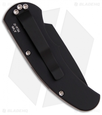 5400 Runt J4 series has a tanto style 154-CM 1-7/8″ California legal blade (black finish, plain). The black anodized handles are milled from T-6061 aircraft aluminum. Despite the knife’s small size it feels very good in the hand (it feels much bigger than it is) and has superb action. It opens like a rocket and locks up solid. The Runt J4 also has a black coated pocket clip.