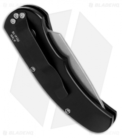 This J4 Runt has a stonewash finished 154-CM tanto blade and black anodized 6061-T6 aluminum handle with a black coated pocket clip.