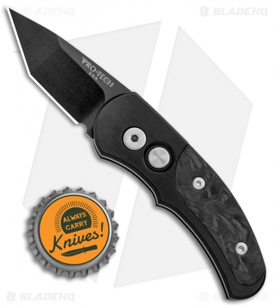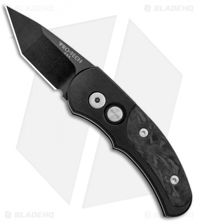 Pro-Tech Runt J4 Tanto Automatic Knife Marbled Carbon Fiber (1.94″ Black)