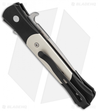 This Don “Tuxedo” knife features a satin finished blade and a black anodized aluminum handle with ivory Micarta inlays. The firing button and hardware are satin finished. Includes pocket clip.