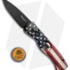 The Tactical Response 2.4 features a black finished 154-CM spear point blade with a plain edge and an anodized 6061-T6 aluminum body with a US flag finish and a Bruce Shaw designed sterling silver skull.