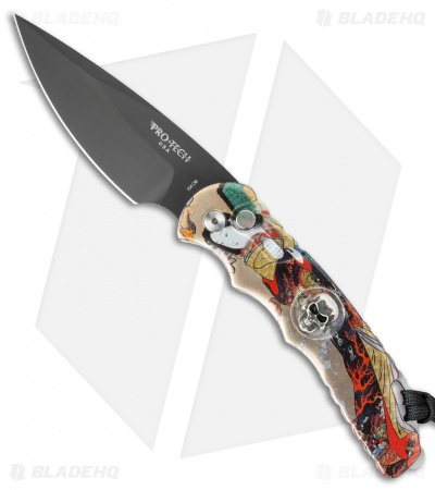 Pro-Tech TR-4 Skull Automatic Knife Geisha Splash (4″ Black)
