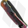 This Pro-Tech TR-4 knife features a Bruce Shaw designed sterling silver skull and polished, custom gold splash anodized aluminum handle. The 154-CM stainless steel blade is black finished and the handle hardware is black coated with a two-tone glass breaker.
