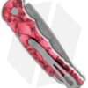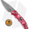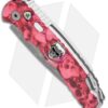 This TR-5 automatic model has a custom red skull anodized aluminum handle with a Bruce Shaw designed sterling skull inlay, mother of pearl push button, and a deep carry tip-up pocket clip. Its blade is made from CPM-S35VN stainless steel in a acid stonewash finish. A sliding safety lock allows secure pocket carry and prevents accidental blade deployment.