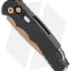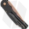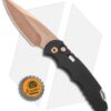 This TR-5 automatic model has a black anodized aluminum handle with a two-tone black back spacer/lanyard attachment, and a deep carry tip-up pocket clip. Its blade is made from CPM-S35VN stainless steel in a rose gold finish. A sliding safety lock allows secure pocket carry and prevents accidental blade deployment.