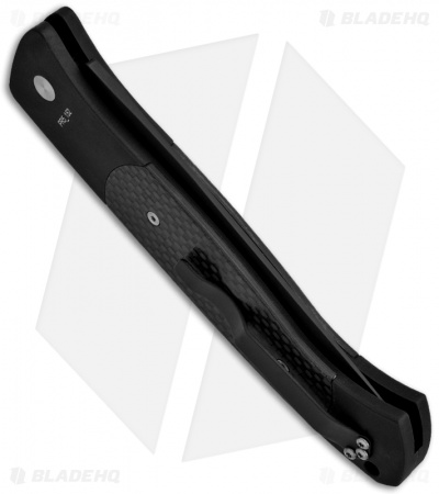 The Brend #1 is a large automatic knife from Protech with the famous Walter Brend “Model 1” blade shape. The 1105 Brend Auto #1 features a black DLC finished blade and black anodized T6 aluminum body with carbon fiber inlays. Includes a tip-up carry pocket clip. This is a giant knife and despite its size it is a fast and solid performer.