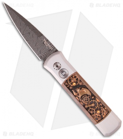Protech Godson Steampunk Ultimate Custom Steel Automatic Knife (3.15″ Damascus)