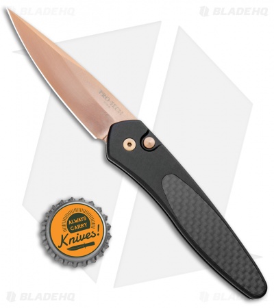 Protech Newport Black Automatic Knife Carbon Fiber (3″ Rose Gold)
