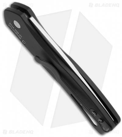This Newport knife has a S35-VN steel blade with a stonewash finish. The black anodized aluminum handle features a carbon fiber inlay. Satin hardware and a black tip-up carry pocket clip.
