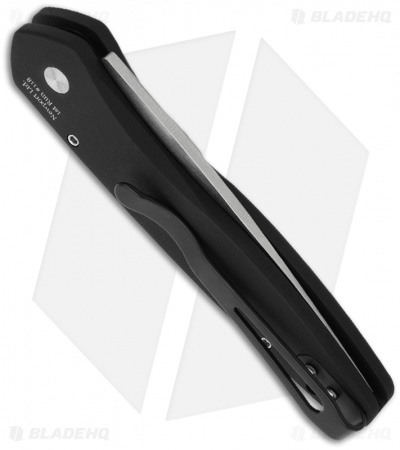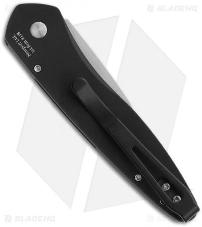 This 1st production limited run Newport knife has an S35-VN steel blade with a stonewash finish. The black anodized aluminum handle features a Super Grip textured black G-10 inlay. Satin hardware and a black tip-up carry pocket clip. The frame is marked “Newport Ltd. 1st Run #XXX” on the back side.
