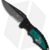 This Protech TR-4 knife features a Bruce Shaw designed sterling silver skull and custom polished “Splash” anodized aluminum handle by Peter Kellett. The 154-CM stainless steel blade is stonewash finished and the handle hardware is satin finished with a two-tone glass breaker.