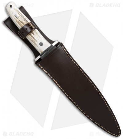 The Puma Ibice fixed blade features rustic handmade quality and a classic hunting knife design. It comes equipped with a double sided dagger blade made from 440C stainless steel. The razor sharp blade has a hollow grind and a plain edge on both sides. Stag horn handle scales and a nickel silver guard and pins add a collectible appearance to the knife. It includes a custom brown leather sheath with a buckle clasp. The Ibice Hunting knife will make a great addition to your fixed blade collection.