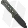 - Green micarta handle with four circular openings.