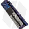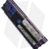 This custom Box Razor automatic knife was hand-made by Rainy Vallotton. It has a Chad Nichols “Cheetah” Damascus blade and “Cheetah” bolsters. The handle features Bog Oak and Rosebud Damascus scales, purple anodized titanium liners and a damascus steel backspacer. The liners and backspacer are filed, adding a nice touch and texture to the knife. The Box Razor comes in a padded zipper pouch with a certificate of authenticity, signed by Rainy Vallotton.