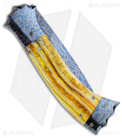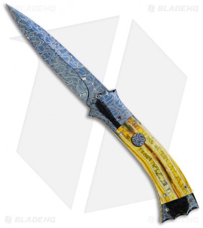 Rainy Vallotton Custom SideWinder Automatic Knife Yellow Molar (Damascus)