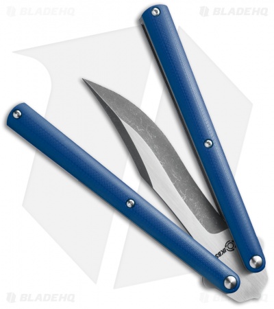 Sam Eddleman Bowie Balisong Knife Blue G-10 (4.25″ Acid Wash/Satin)