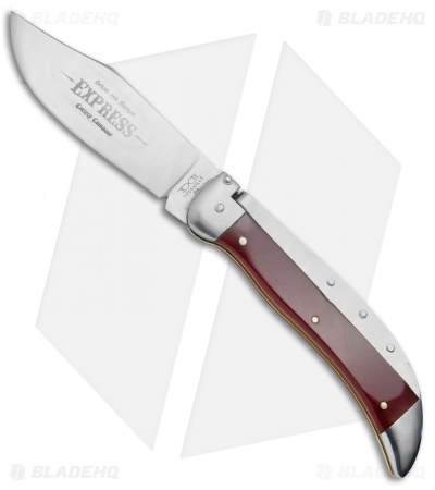 This Schatt & Morgan #71 Express automatic knife comes fitted with Red Acrylic scales.