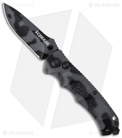 Whether it’s for everyday tasks or urgent situations, Schrade’s SC60C automatic knife has what you need. This model features an urban camo coated blade and handle. The drop point blade is designed for general utility tasks you encounter, while the glass breaker tip is available in case of emergency. The aluminum handle features sculpted and textured grips to improve safety and handling. The push button release gives fast action and secure lock up. A tip-up pocket clip and lanyard hole mean you will always have this blade within easy reach when you need it.