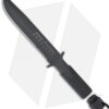 The Schrade Extreme Survival SCHF2 fixed blade knife is a big knife that features a single piece drop point style blade and handle made from 1070 stainless steel. The 7.5″ blade is partially serrated and the handle has diamond pattern knurling for a confident grip. Unscrewing the handle end reveals a driver tool with flat head (3/32″, 3/16″, 1/4″), Phillips (PH#0, 1, 2), Torx (10, 15, 20), and Allen (5/64″) tips. The O-ring keeps moisture out of hollow handle when tightened appropriately. Includes a ballistic nylon sheath.