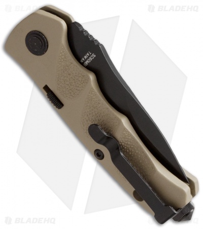 Whether it’s for everyday tasks or an urgent situation, Schrade’s SC60BRS automatic knife has what you need. It sports a spear point style blade for general utility tasks you encounter every day, while the glass breaker tip is available in case of an emergency. The desert tan aluminum handle features sculpted and textured grips to improve safety and handling. The push button offers fast action and secure lock up. A tip-up pocket clip and lanyard hole mean you will always have this blade within easy reach when you need it.