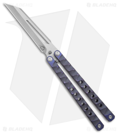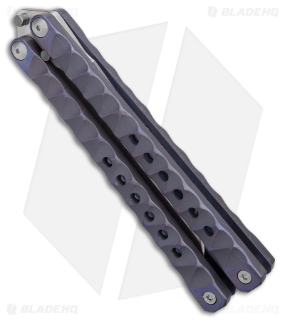 This Scorpion 6 Knives custom butterfly knife is from Blade Show West 2022! It features an AEB-L tanto blade and sculpted purple titanium handles.