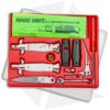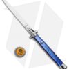 This 13″ Italian Stiletto from SKM Italy offers classic stiletto style with a blue pearlex handle and a satin finished blade. SKM makes a variety of Italian stilettos featuring traditional designs at an affordable price. This 13″ model has a blue pearlex handle with stainless steel bolsters. Brass pins and liners add a classic finishing touch to the piece. The blade has a flat grind with a plain edge and a satin finish. Experience the affordable Italian quality of these authentic stilettos from SKM Italy.
