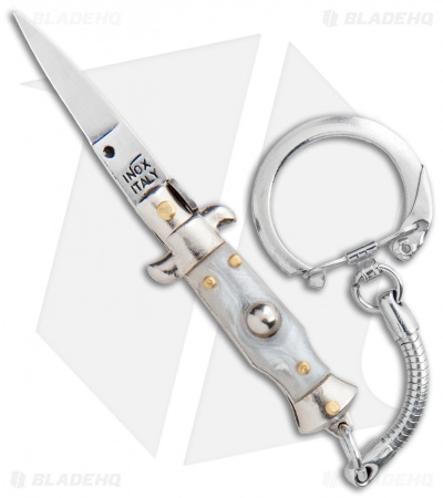 This 2.75″ Keychain Stiletto from SKM Italy comes in the classic style with a gray handle and a satin finished blade. SKM makes a variety of Italian stilettos featuring traditional designs at an affordable price. This 2.75″ model has a gray acrylic handle with stainless steel bolsters. Brass pins add a classic finishing touch to the piece. The blade has a flat grind with a plain edge and a satin finish. Experience the affordable Italian quality of these authentic stilettos from SKM Italy.