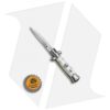 This 4.5″ Keychain Stiletto from SKM Italy comes in the classic style with a white acrylic handle and a bayonet style blade. SKM makes a variety of Italian stilettos featuring traditional designs at an affordable price. This 4.5″ model has a white pearlex handle with stainless steel bolsters. Brass pins add a classic finishing touch to the piece. The blade comes in a bayonet style with a plain edge and a satin finish. Experience the affordable Italian quality of these authentic stilettos from SKM Italy.