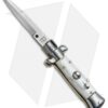 This 4.5″ Keychain Stiletto from SKM Italy comes in the classic style with a white acrylic handle and a bayonet style blade. SKM makes a variety of Italian stilettos featuring traditional designs at an affordable price. This 4.5″ model has a white pearlex handle with stainless steel bolsters. Brass pins add a classic finishing touch to the piece. The blade comes in a bayonet style with a plain edge and a satin finish. Experience the affordable Italian quality of these authentic stilettos from SKM Italy.