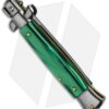This 8″ Italian Stiletto from SKM Italy offers classic stiletto style with a green pearlex handle and a satin finished flat grind blade. SKM makes a variety of Italian stilettos featuring traditional designs at an affordable price. This 8″ model has a pearlex handle with stainless steel bolsters. Brass pins and liners add a classic finishing touch to the piece. The flat ground blade has a plain edge and a satin finish. Experience the affordable Italian quality of these authentic stilettos from SKM Italy.