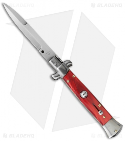 This 8″ Italian Stiletto from SKM Italy offers classic stiletto style with a red pearlex handle and a satin finished bayonet blade. SKM makes a variety of Italian stilettos featuring traditional designs at an affordable price. This 8″ model has a pearlex handle with stainless steel bolsters. Brass pins and liners add a classic finishing touch to the piece. The bayonet blade has a plain edge and a satin finish. Experience the affordable Italian quality of these authentic stilettos from SKM Italy.