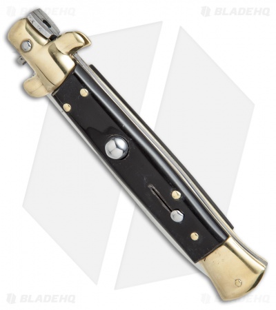 SKM 9″ Italian Stiletto Automatic Knife Brass/Dark Horn (4″ Satin Flat)