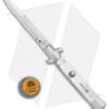 This 9″ Italian Stiletto from SKM Italy offers classic stiletto style with a white pearlex handle and a satin finished bayonet blade. SKM makes a variety of Italian stilettos featuring traditional designs at an affordable price. This 9″ model has a pearlex handle with stainless steel bolsters. Brass pins add a classic finishing touch to the piece. The bayonet blade has a plain edge and a satin finish. Experience the affordable Italian quality of these authentic stilettos from SKM Italy.