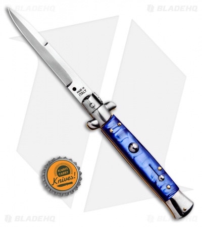 SKM 9″ Italian Stiletto Bayonet Automatic Knife Blue Acrylic (4″ Satin)
