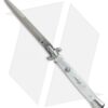 This 11″ Italian Stiletto from SKM Italy offers classic stiletto style with a white pearlex handle and a kriss style blade. SKM worked with famed knife-maker Armando Beltrame to bring you traditional stiletto designs at an affordable price. This 11″ model has a pearlex handle with stainless steel bolsters. Brass pins and liners add a classic finishing touch to the piece. The kriss style blade has a plain edge and a satin finish. Experience the affordable Italian quality of these authentic stilettos from SKM Italy.