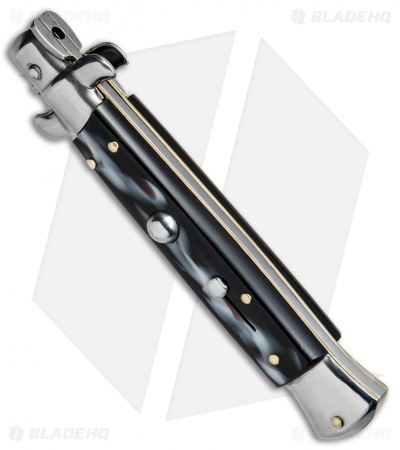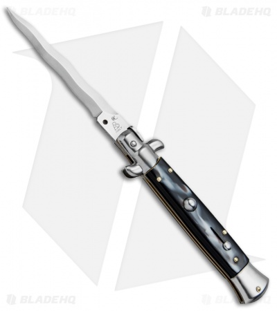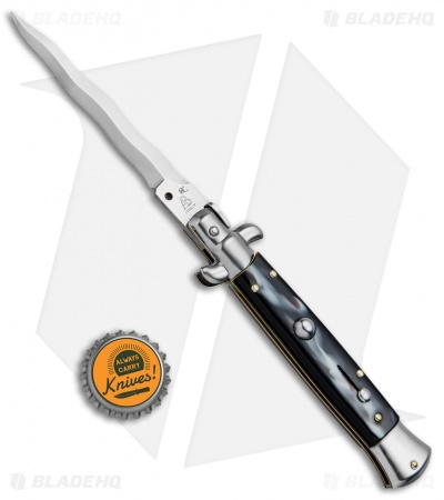 SKM AB 9″ Italian Stiletto Automatic Knife Sim Horn (3.8″ Satin Kris)