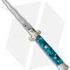 This 9″ Italian Stiletto from SKM Italy offers classic stiletto style with a turquoise acrylic handle and a satin finished dagger blade. SKM makes a variety of Italian stilettos featuring traditional designs at an affordable price. This 9″ model has an acrylic handle with stainless steel bolsters. Brass pins add a classic finishing touch to the piece. The dagger blade has a plain edge and a satin finish. Experience the affordable Italian quality of these authentic stilettos from SKM Italy.