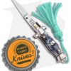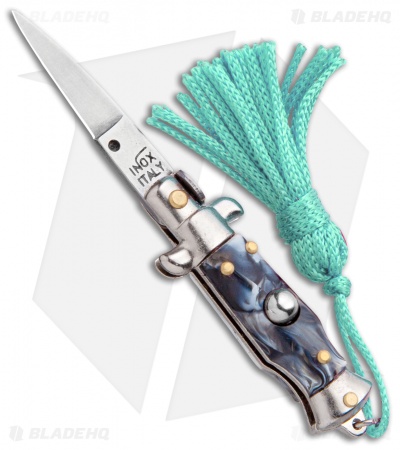 SKM Italian Stiletto Keychain Automatic Knife Marble/Teal (1.125″ Satin)