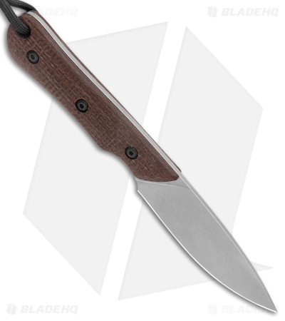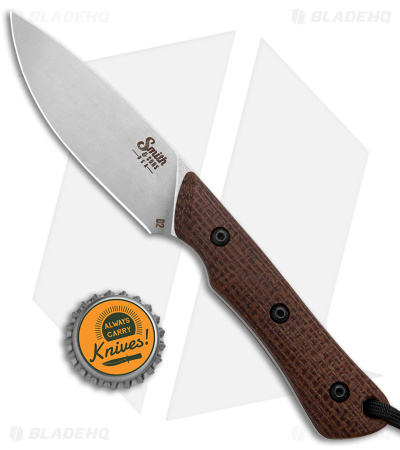Smith & Sons Brave Fixed Blade Knife Brown Burlap Micarta (3.2″ Stonewash D2)