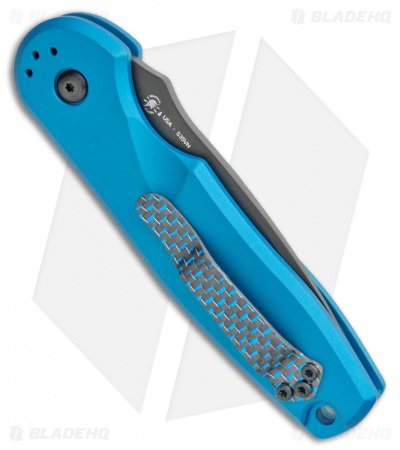 This Zelos has a PVD coated blade and a blue anodized aluminum handle.