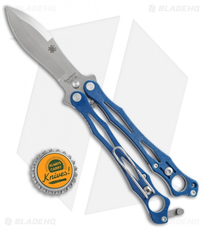 The Spyderco Smallfly butterfly knife features a 3″ plain edge, flat ground 154CM stainless blade. The handle has skeletonized stainless steel with blue G-10 overlays. A versatile, 4 way reversible wire pocket clip, allows for multiple carry options. The latch is spring loaded for quick opening. Screw together construction for easy adjustment and cleaning.